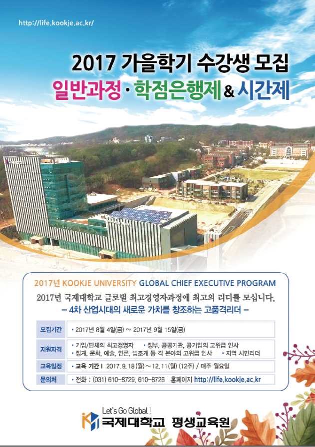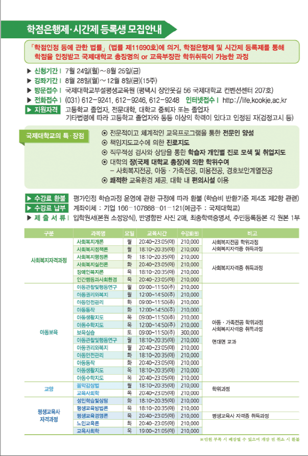 2017 가을학기 일반과정 , 학위과정 (학점은행제&시간제) 모집안내