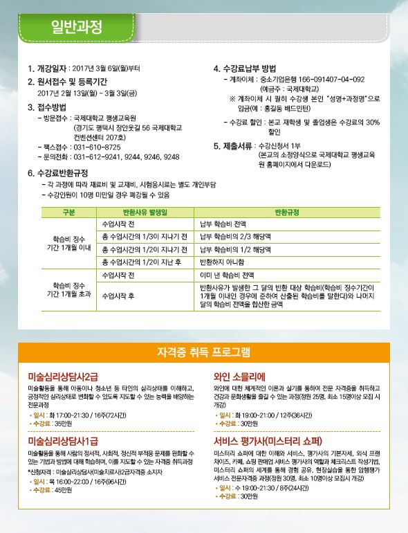2017학년도 1학기 일반과정 개강안내