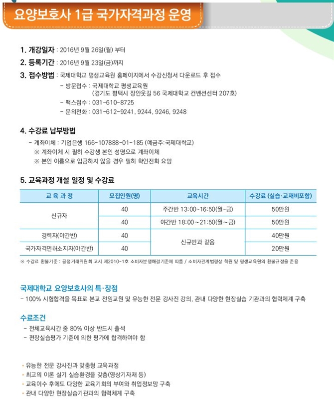 2016학년도 2학기 일반과정 모집 안내
