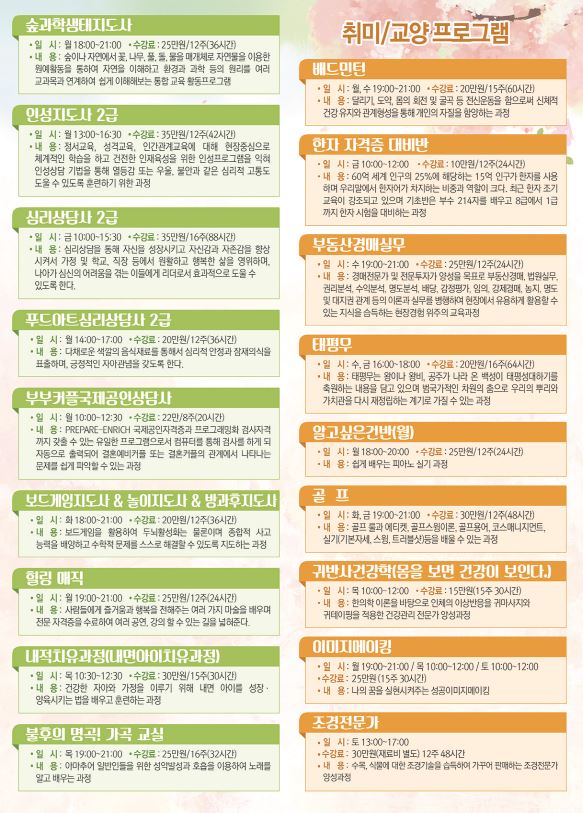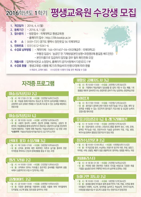 2016학년도 1학기 일반과정 수강생 모집
